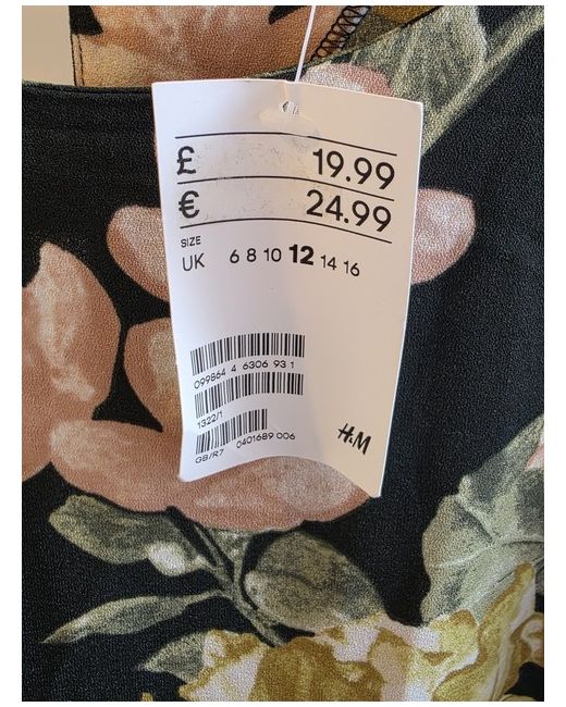 H M Black and Cream Flower Pattern Dress EUR Large