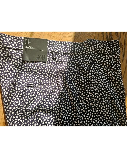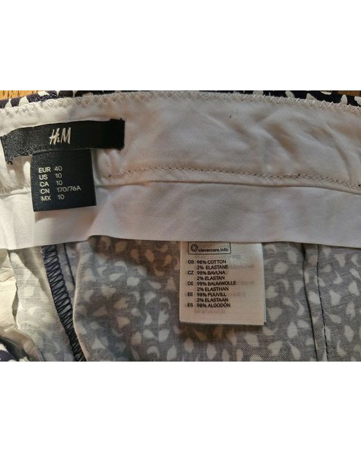 These BNWT H&M Stretch Cotton Patterned Tapered ankle-length Slacks in Dark Navy/White are a stylish and versatile addition to any woman's wardrobe. Made from comfortable cotton with stretch, they are perfect for a variety of occasions including casual outings, formal events, and workwear. The tapered leg style and mid-rise fit offer a flattering clean silhouette, while the zip closure and button accents add a touch of detail. Easy to care for with machine washable instructions, these slacks are a timeless choice for the summer and spring seasons. Has 2 side pockets and a welt pocket on the back. Button, hook and zip fastening at front and belt loops around the waistband.