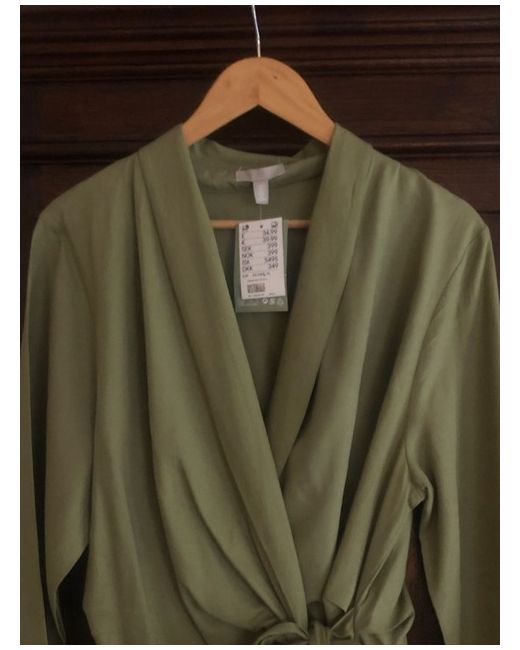 H&M Khaki Linen mix wrap dress top, size large. Lovely top dress for the autumn/winter 2024 season. MAT linen/viscose mix. WID 16" however adjustable with the belt. SIZE Large.