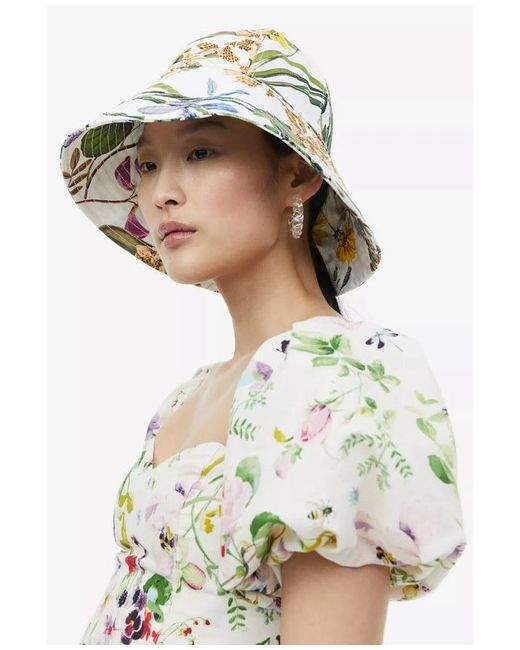 This is a gorgeous H&M b ucket hat in patterned cotton canvas with a rounded crown and a wide, sloping brim. It is labelled a 'M/56'.