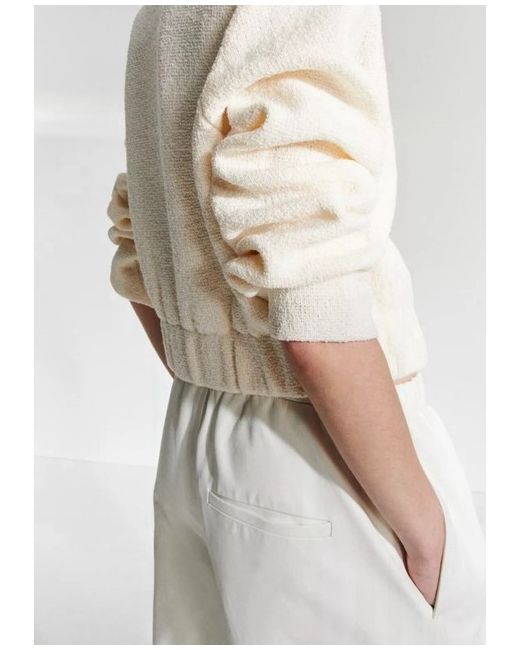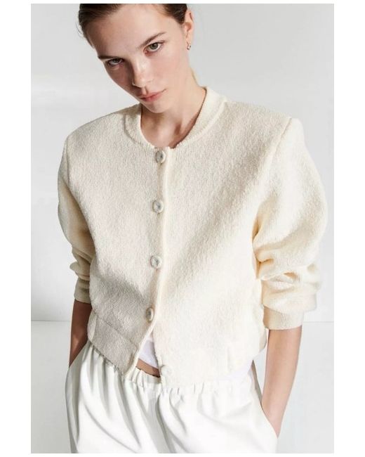 Oversized Loose-fit jacket in a textured knit featuring a small, ribbed collar, covered buttons down the front, shoulder pads and covered elastication at the hem. LENGTH: Regular length SLEEVE LENGTH: Long sleeve FIT: Loose fit NECKLINE: Round neck DESCRIPTION: Cream, Solid colour COMPOSITION Polyamide 5%, Viscose 13%, Polyester 82%