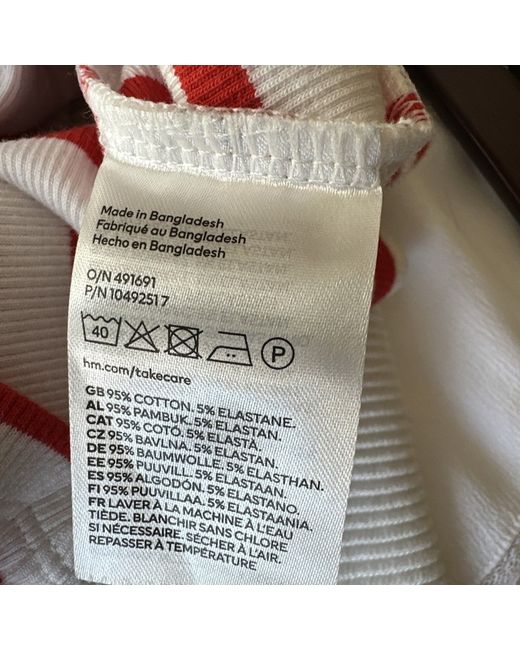 Size large but small fit so more of a medium UK 10/12 Cropped fit Cream with red stripe Washed but never worn