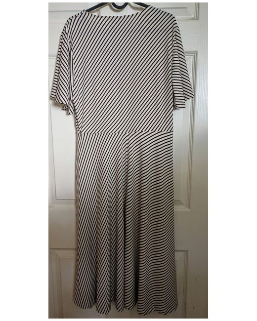Elevate your wardrobe with this stunning midi-length dress from the popular brand H&M. Perfect for any occasion, this dress features a trendy striped pattern in ivory, with a flattering fit and flare style that will accentuate your figure. The dress has a V-neckline, short flared sleeves, and a midi-length hemline, making it suitable for both formal and casual events, as well as workwear. This dress is available in size L, and is made from high-quality materials that will ensure long-lasting durability. Whether you're attending a party, a cocktail event, or simply running errands, this dress is the perfect choice. Don't miss out on the opportunity to add this stylish and versatile piece to your wardrobe.