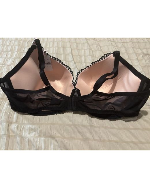 Black bra with lovely cut out lace detail to front revealing a pale pink colour underneath. Brand new with tags 48E Padded and Underwired