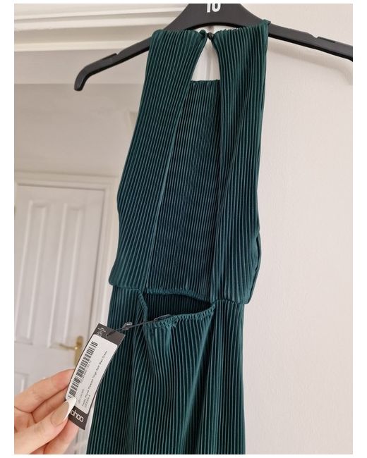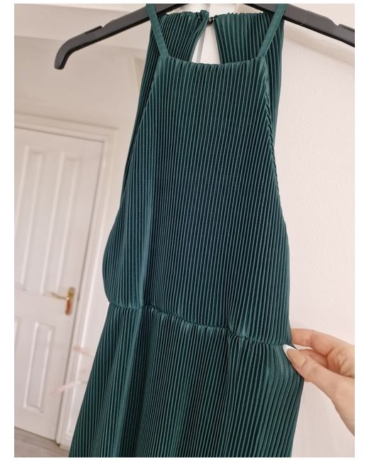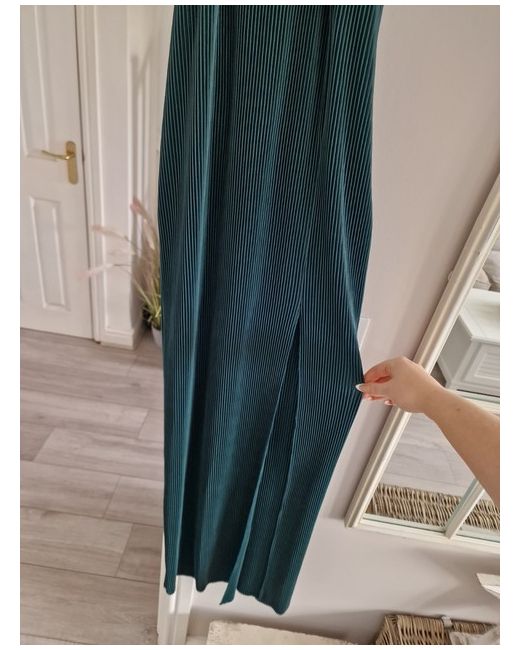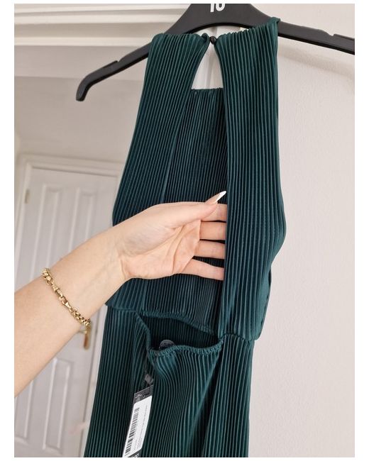 Women's Green Dark Pleated Split Leg Long Backless Evening Dress 4 Petite