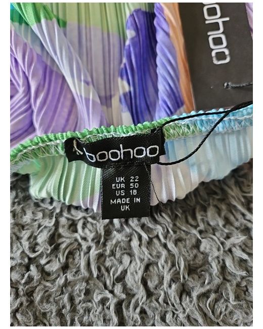 Embrace the vibrancy of summer with this stylish multicoloured Boohoo Bodycon dress. Perfect for both casual and party settings, this versatile piece features a flattering scoop neckline and a sleeveless design, making it ideal for those warm, sunny days. The colourful block pattern adds a playful touch to your wardrobe, ensuring you stand out in the best way possible. The dress is crafted from durable polyester material and comes in a size 22, ensuring a comfortable fit for the regular build. It's accentuated with delightful ruffles, giving it an extra element of charm. Long in length, it offers an elegant silhouette that's both fashionable and comfortable for any summer occasion.