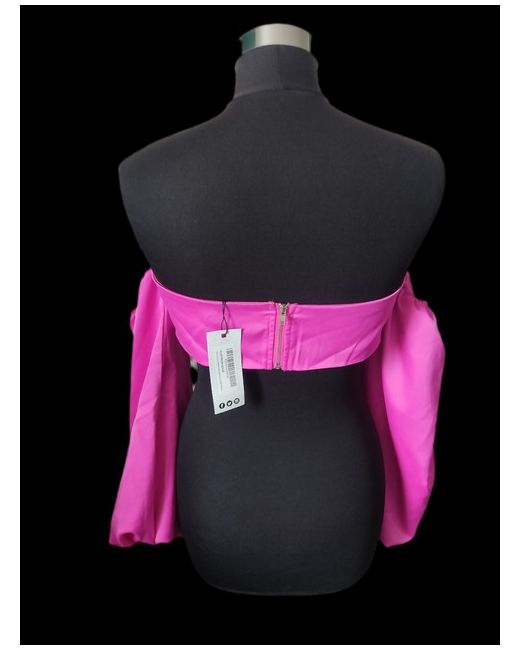 Boohoo petite womens crop top size 14 Ruched Extreme puffed sleeve Brand new Hot pink colour Chest-48/50cm