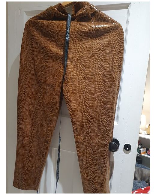 New, soft, faux snakeskin women's trousers. High waist, belt at the waist.