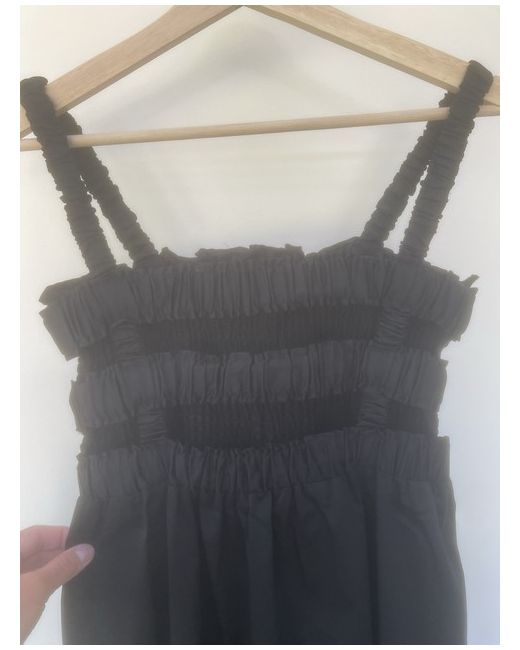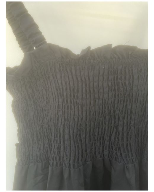 Gorgeous strappy sundress with ruched bodice and full cotton skirt with pockets. Pretty strappy detailing at the back.