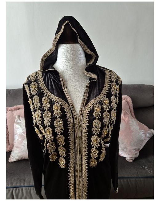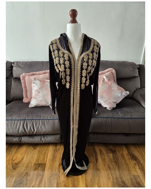 This stunning black abaya is a must-have for any party or cocktail event. The marrocan style dress is made of high-quality velour material, ensuring both comfort and elegance. The dress features a v-neckline, long sleeves, and a long length, making it perfect for the winter, autumn, and spring seasons. The dress is one size fits all, and the black colour adds a touch of sophistication to any outfit. The Arabic character and style of the dress make it a unique and beautiful addition to any wardrobe. This abaya is perfect for women who want to make a statement at their next event.