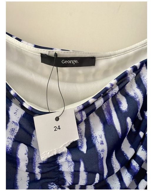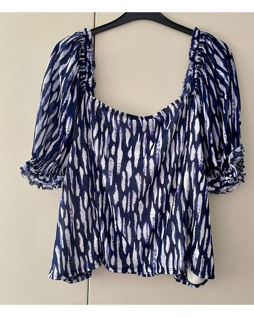 Pair this blouse with high-waisted jeans and sandals for a casual yet elegant look, or dress it up with a skirt and heels for a night out. Featuring a bold abstract print in shades of navy, purple and white, this top is perfect for adding a touch of artistic flair to your outfit.