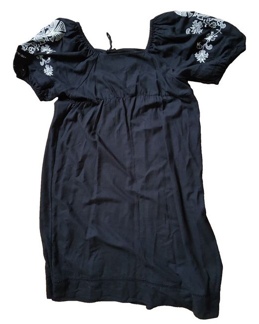 Black Short elasticated Sleeves Long Top Embroidered 24 BNWOT