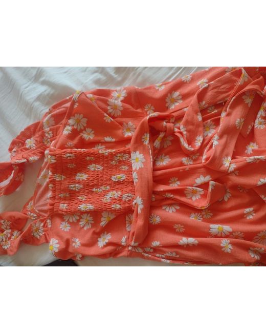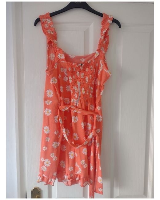 New with tags shorts playsuit. Size 12-14 Coral colour Elasticated back and tie at the back.