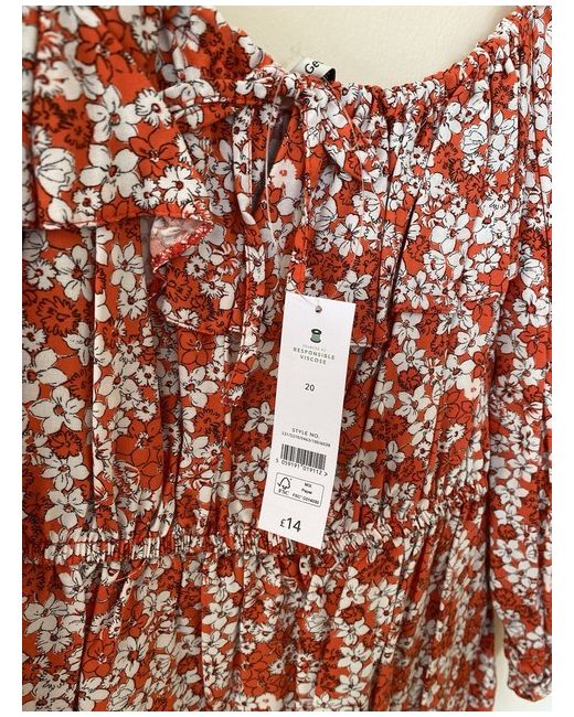 Ladies floral print blouse by George. Size 20 with 3/4 length elasticated sleeves. Elasticated at waist with flounce detail round neck. Lovely orange, black and white floral pattern. New with tags