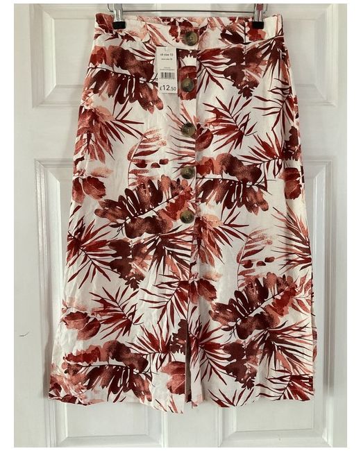 Featuring a stunning red and white leaf pattern. Straight fit with a button front fasten. Midi length.