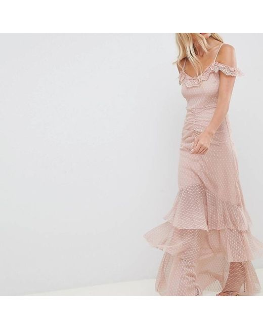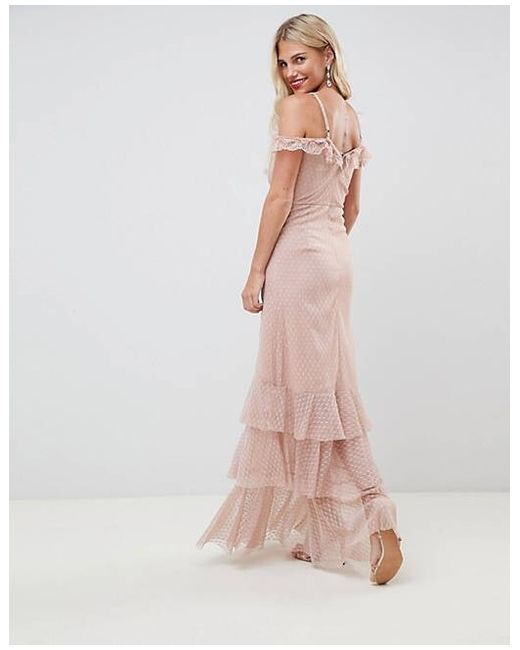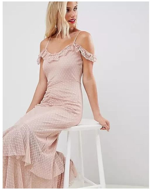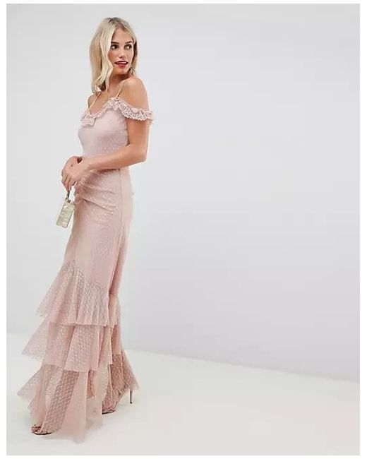 Design Dobby Strappy Cold Shoulder Layer Fishtail Maxi Prom Dress 6