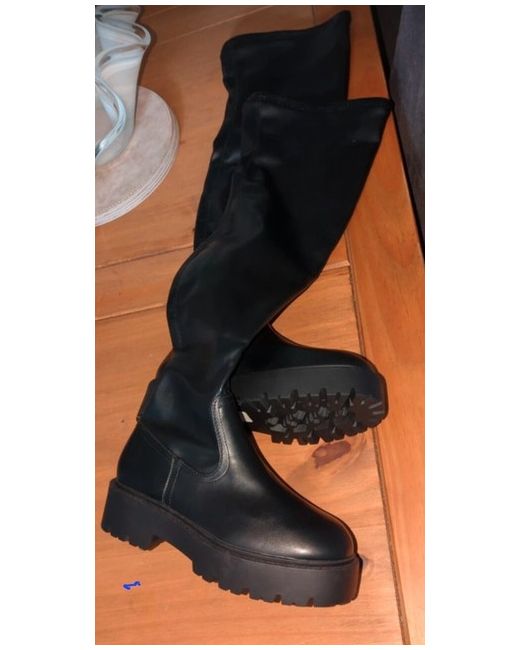 Elevate your footwear collection with these chic ASOS thigh high flat boots, an essential for anyone who values both style and comfort. The versatile black hue ensures they pair seamlessly with any outfit, while the flat design offers a sleek silhouette without compromising on practicality.Crafted for the modern woman, these boots are a UK size 8 W, designed to provide a comfortable fit for all-day wear. Whether you're heading to the office or enjoying a casual day out, these boots will be your go-to for a sophisticated and effortless look.