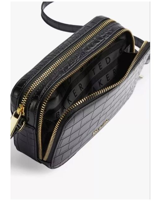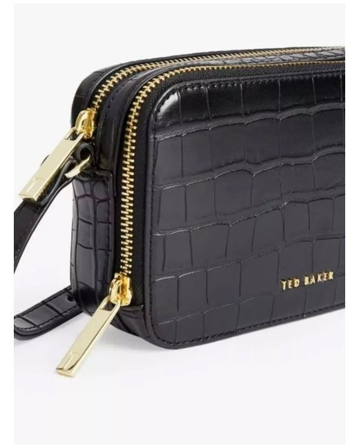 Ted Baker Stina Double Zip Croc Effect Mini Camera Bag Black BNWT. Condition is Brand New with tags.