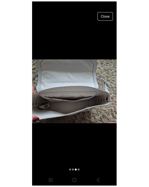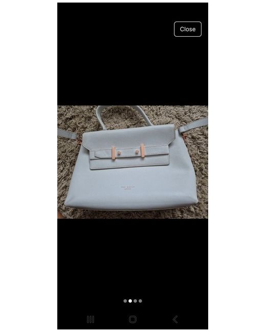 This Ted Baker handbag is a new with defects crossbody style made of grey leather. It features a solid pattern with gold hardware and a detachable strap. The bag measures 25 cm in width, 20 cm in height, and 13 cm in depth. The handle/strap is crafted from grey leather, making it a stylish and versatile accessory for women.