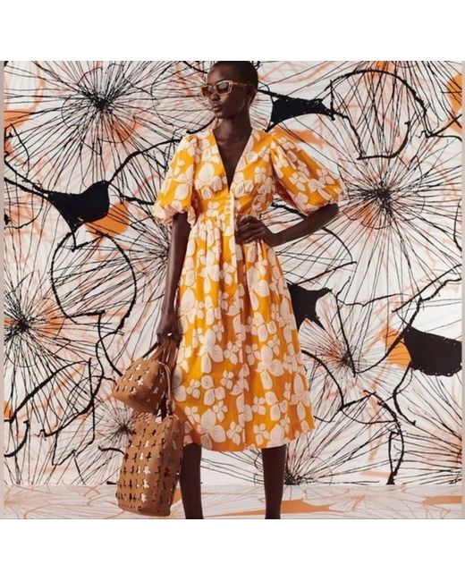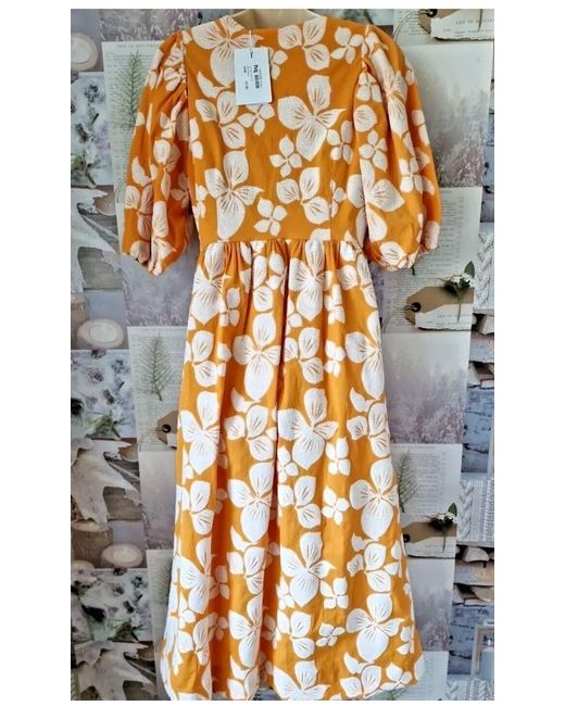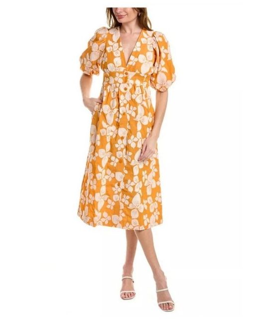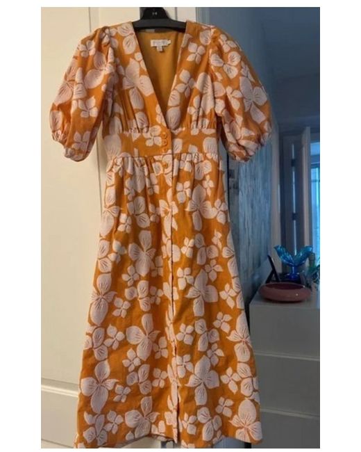 Women's Floral Cinthy Dark Orange V-Neck Button Front Dress 3 UK 12 250