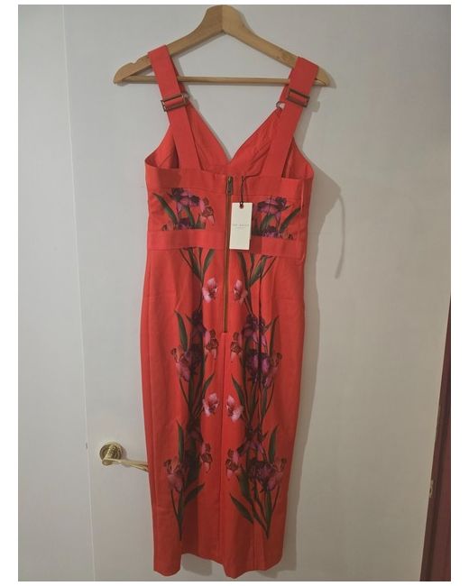 Embrace the essence of sophistication with the Ted Baker floral bodycon dress, a stunning piece that promises to elevate your wardrobe. It features a vibrant red hue adorned with a delicate floral pattern, ideal for a variety of occasions from cocktail parties to weddings. The dress is crafted to flatter with a bodycon style, complemented by ajustable wide straps and a midi length that exudes timeless elegance.Specially designed for the fashion-conscious woman, this dress comes in a size 10 (UK 10), ensuring a regular fit that's both comfortable and chic. It's made with stretch material to accentuate your silhouette, and it's versatile enough to carry you through autumn, spring, and summer. Make a statement at your next event with this Ted Baker creation.