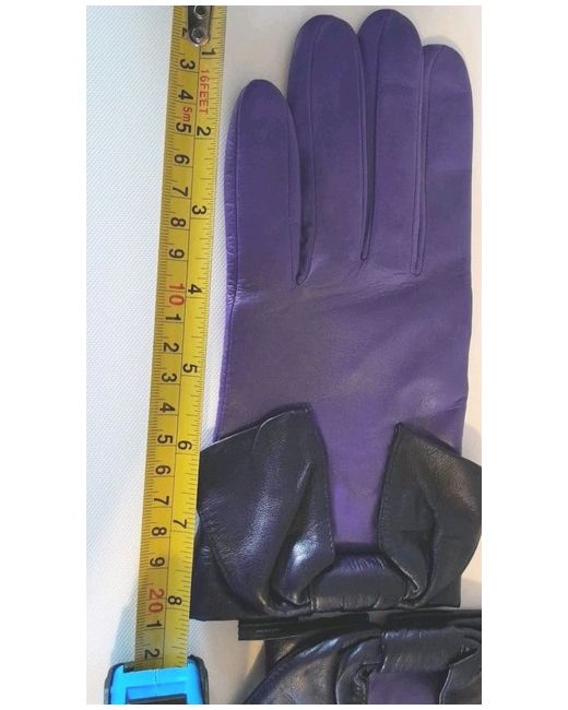 Women's Purple Soft Leather Gloves With Bow Medium M Designer Luxury
