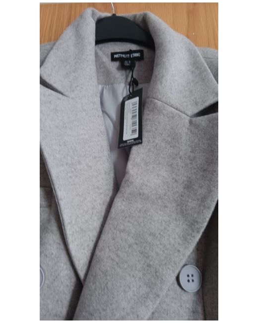 NEW Pretty Little Thing Grey Brush Wool Look Oversized Drop Shoulder Coat UK12