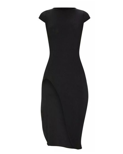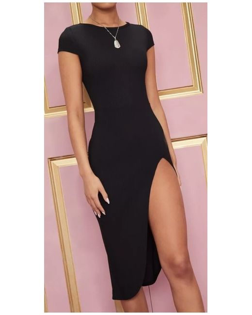 Women's Black Ribbed Extreme Split Cap Sleeve Midi Dress Pretty Little Thing SOLD OUT 8