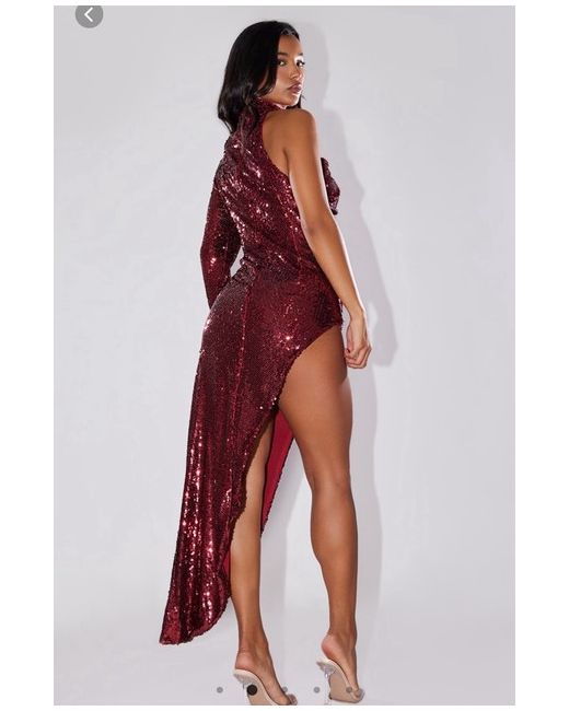 Pretty Little Thing Cherry Red High Neck One Shoulder Sequin Dress Size 10 Brand New With Tags Bought For £60