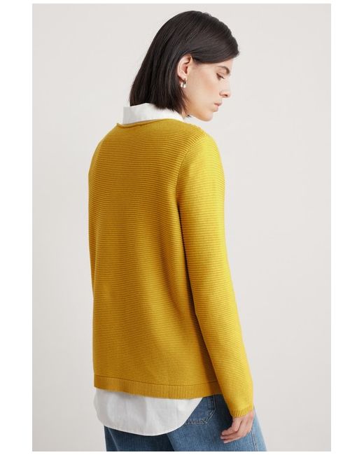 Makers Organic Cotton Knitted Jumper. This organic cotton jumper has a simple, easy-fit silhouette, bracelet length sleeves and a crew neck with a pretty rolled trim. The fuss-free shape lets the ripple stitch texture and fresh Cornish colours shine.