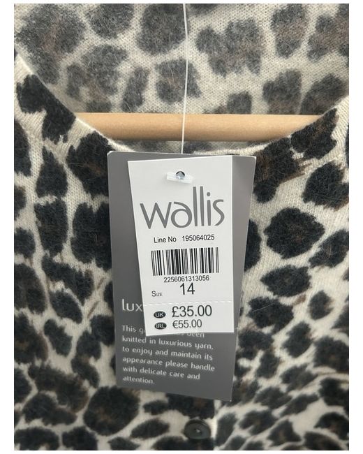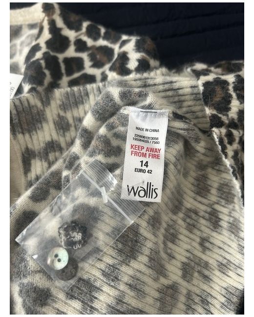 The Wallis Lambswool and Angora Cardigan in size 14 with 3/4 length sleeves is a stylish and versatile addition to any woman's wardrobe. The animal print design adds a fun and vibrant touch, while the brand's quality ensures durability. this cardigan is both fashionable and practical, making it a must-have for any woman looking to stay comfortable and chic. New with tags