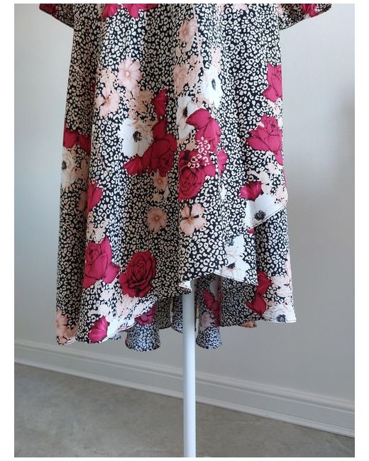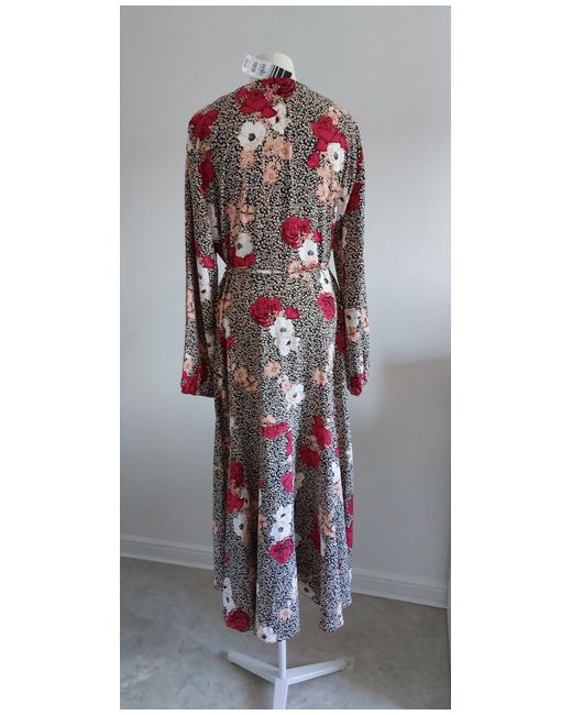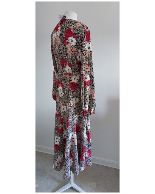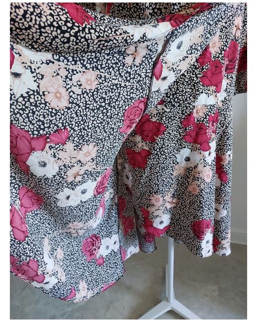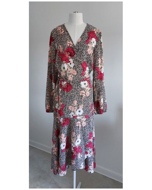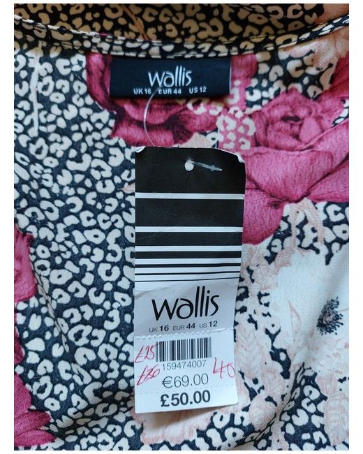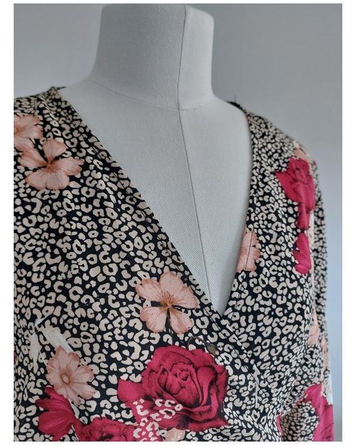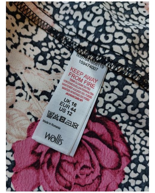 Lovely dress by Wallis. Wrap style. Not lined. Floaty fabric. Pattern is floral with an animal print background in pink, fuchsia, beige and black. Midi length at front, longer at the back. Labelled as a 16.