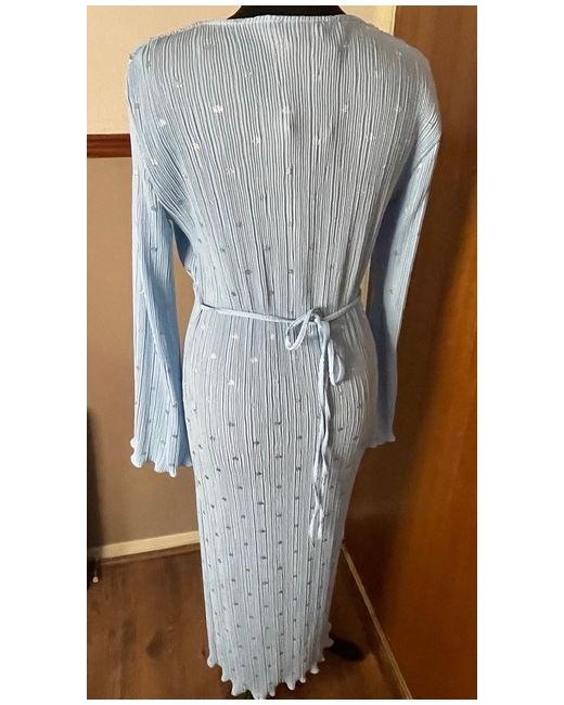 Midi Dress Blue Print Tie Back Long Sleeve Elegant