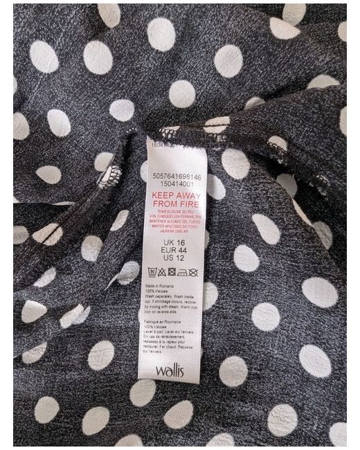 This Wallis Black Polka Dot Dress in size 16 is a stylish and versatile choice for various occasions. With long sleeves and a collared neckline, it offers a classic fit & flare style that is perfect for parties or casual wear. Made of viscose material and machine washable, this midi-length dress is lined for added comfort and features a button closure for convenience. The timeless black polka dot pattern adds a fun and playful touch to the garment, making it a must-have for your summer and spring wardrobe.