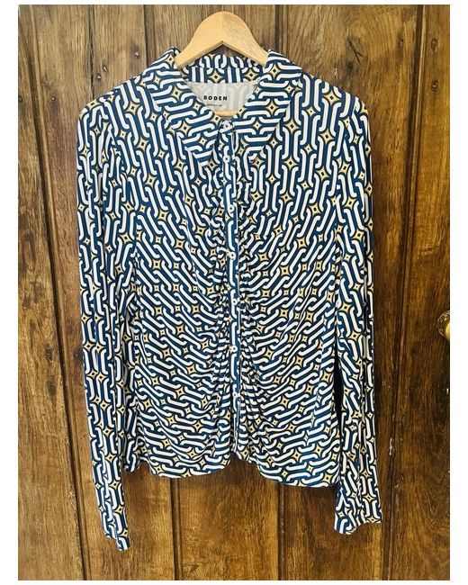 Boden Stretch Jersey Cotton blue patterned blouse. Gathered at the front. Size 20 Brand new without tags.