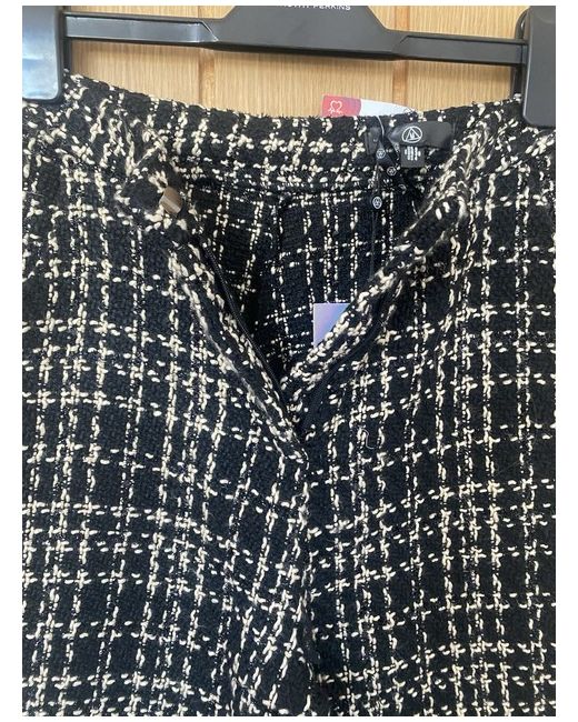 New with tags but purchased from a charity shop. UK size 8 but would fit a size 6/ small 8. The fabric doesn’t have any stretch. Boucle checked fabric. Ruffle around the bottom of the legs.