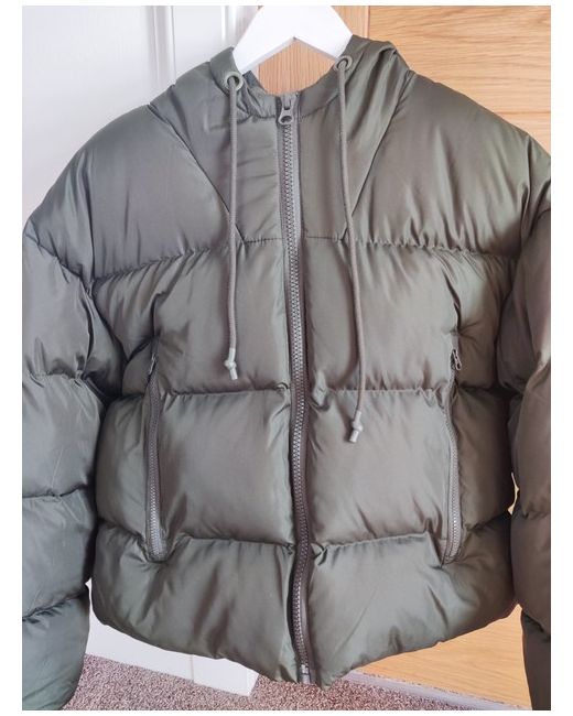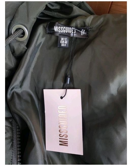 Missguided size 12 Khaki coloured puffer jacket with hood Zip pocket fastening Brand new with tags Smoke free home