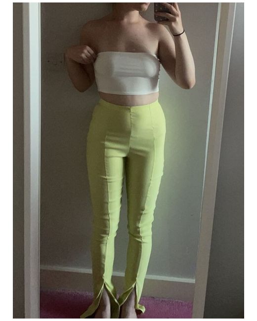 Lime Stretch Poplin Split Front Trousers. Has a little zip at the top on the left side.