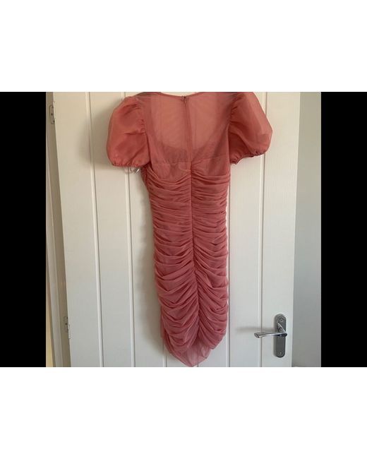 Misguided Pink Mesh Ruched Puff Sleeve Mini Dress UK 8.