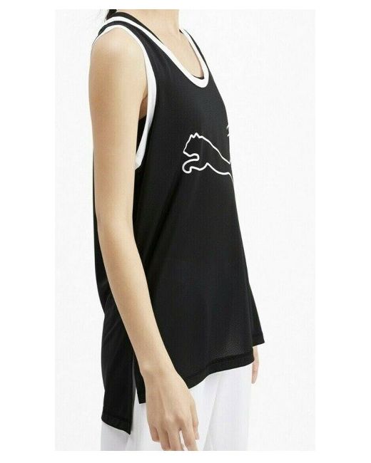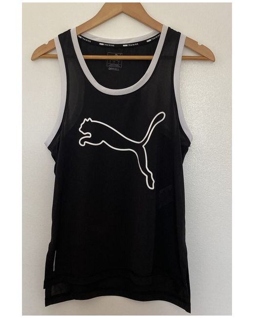 This Puma women's training tank top is perfect for any gym or outdoor workout. The sleeveless design and scoop neckline provide comfort and flexibility during exercise. The garment is made from 100% polyester material, which is machine washable and easy to care for. With a relaxed fit, this black tank top features a Puma Drycell logo accent and graphic print, adding a touch of style to your activewear collection. The shirt length measures 61 cm, while the chest size is 88 cm, making it a great fit for those who wear size Small. Perfect for autumn, winter, summer, or spring, this tank top is ideal for gym and training activities like cross-training and CrossFit.