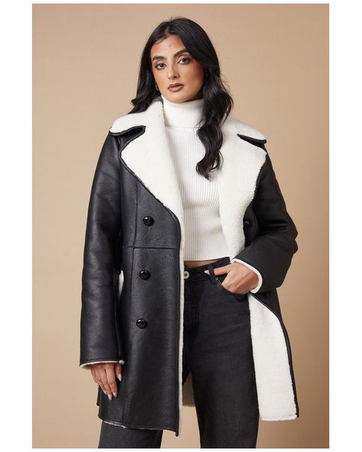 The contrasting shearling collar and lining not only provide extra warmth but also add a luxurious touch to the overall design. The versatile mid-thigh length makes it suitable for various occasions, from casual weekend outings to family gatherings.