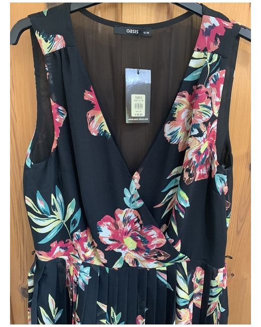 Oasis Black Floral Dress. Has beautiful cut. Short in the front and longer at the back. Condition is New with tags. Dispatched with Royal Mail 2nd Class.