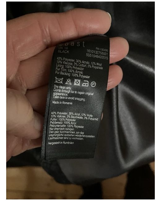 Ladies coast coat size 18 colour black. Coat has a sort of lace pattern in the material.