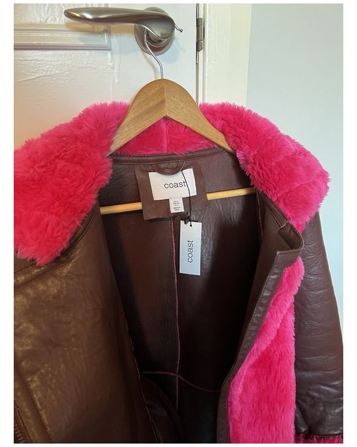 Look stylish and chic in this beautiful pink vqyaviator coat from Coast. Made of high-quality leather and shearling, this coat is perfect for women who want to stay warm and trendy. With a regular size of 12, this coat fits perfectly on anyone who wants to look fashionable. This coat is perfect for any occasion, whether you're going to work or out on a date. The stunning pink colour adds a touch of elegance and sophistication to your look. So, what are you waiting for? Buy this coat today and make a statement wherever you go!
