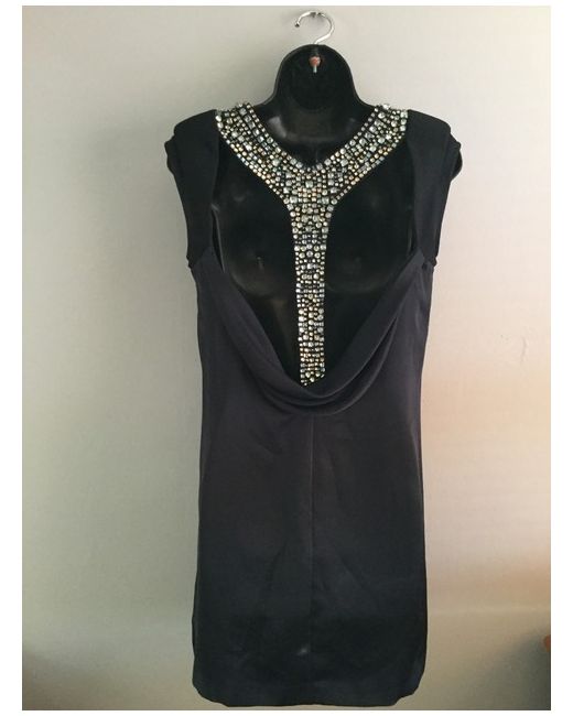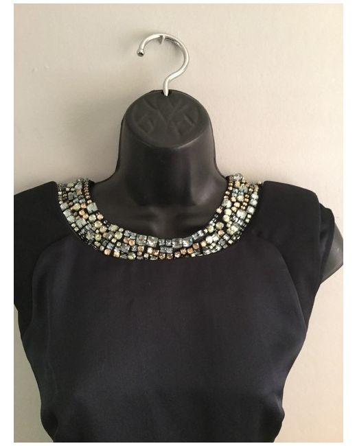 A stunning and unusual navy blue Coast dress set with pale blue and amber coloured stones around the collar bone and down the open back. Over the head shift dress. Size 8 New without tags