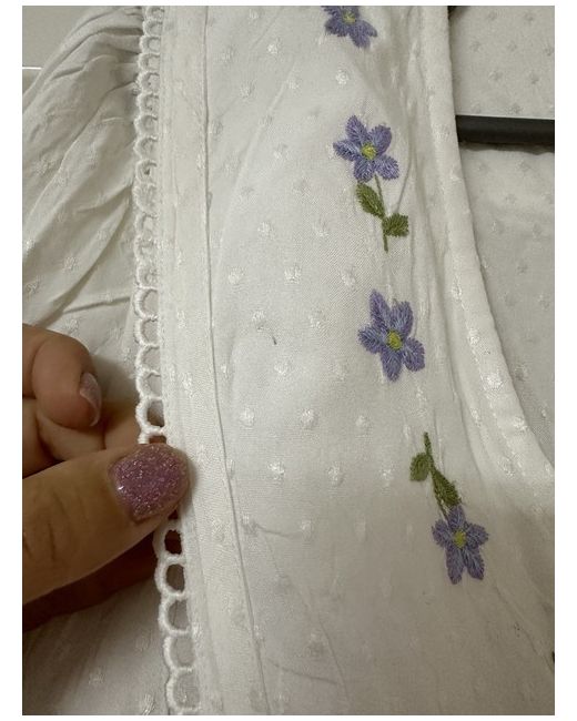 Brand new Size-S Embroidered Floral motives V-neckline Billowy sleeves No refund P.s.when I open the package I noticed a small dark spot at the front of the blouse ,not very visible (there is photo attached )