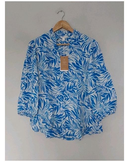 Monsoon Florence Leaf Print Blouse Blue Size Medium Chest 40" Length 26" 100% Viscose QVC NEW.