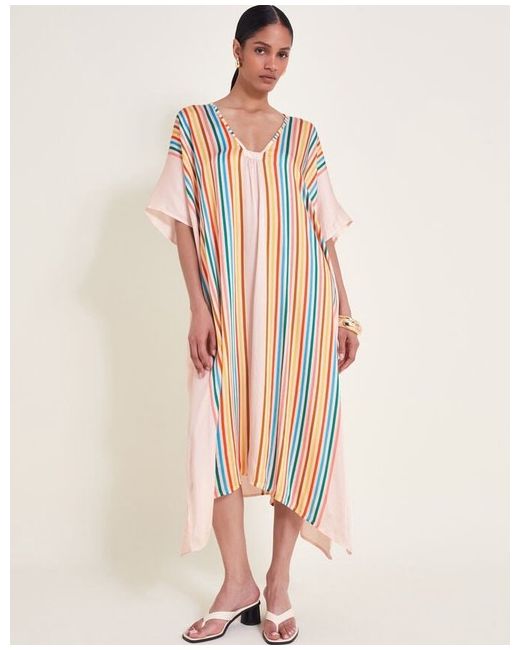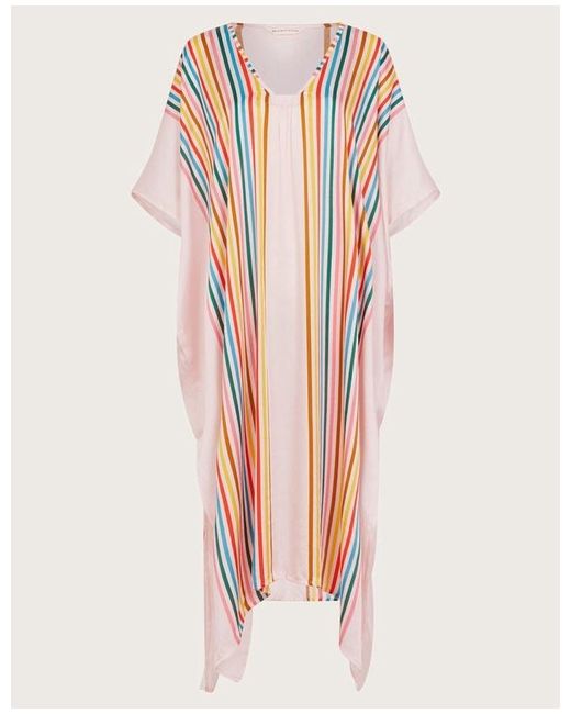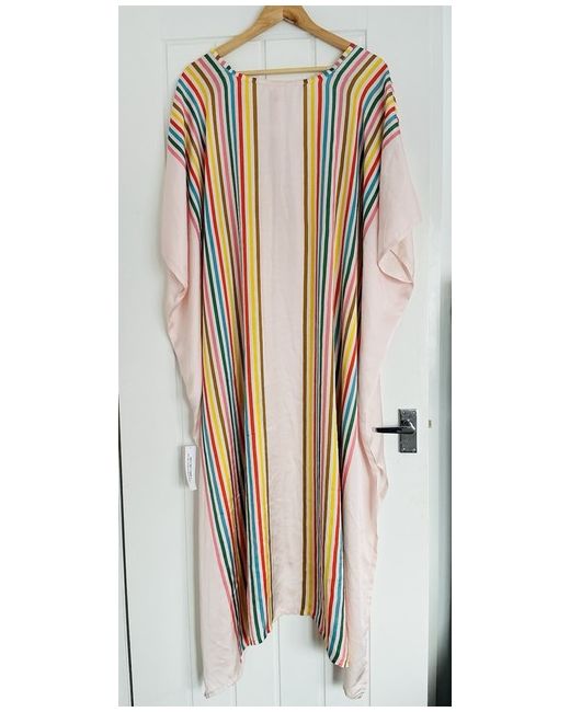 Women's Multicolor Opal Pink Multi Striped Satin Floaty Dipped Sides Kaftan Sz L/XL 80.00