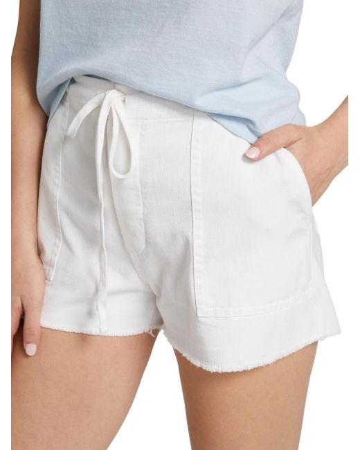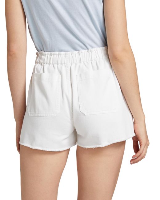 Crafted of cotton, these Beach shorts from Re/done are designed with a drawstring waistband and pockets at the sides and back. Drawstring waistband Side slip pockets Back patch pockets Pulls on 100% cotton Machine wash Imported SIZE & FIT Rise: about 12" Inseam: about 2.5" Leg opening: about 25.5" Model measurements: 5'10" tall Model is wearing a US size Small. Contemporary Sportswear - Denim And Bottoms > Re/done > Saks Fifth Avenue > Barneys. Re/done. Color: Vintage White. Size: 25.
