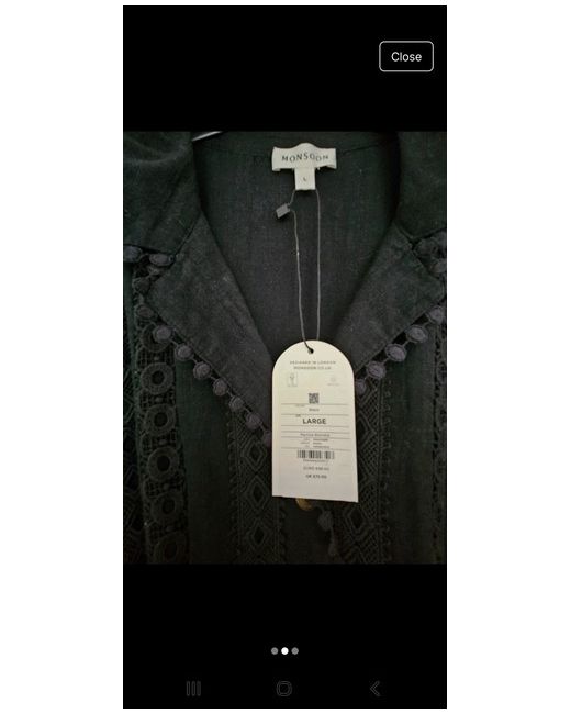 Embrace the timeless elegance of the Monsoon button-through dress, a garment that combines classic style with contemporary charm. Available in a size large, this piece is tailored for a regular fit, ensuring both comfort and a flattering silhouette. The dress is distinguished by its intricate embroidered accents, adding a touch of sophistication to any occasion.